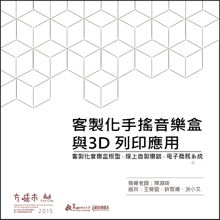 本專題透過自製音樂平台輸出樂譜,搭配3D列印音樂盒做結合,使訪客可以體驗自己創作音樂並用手搖音樂盒播放。